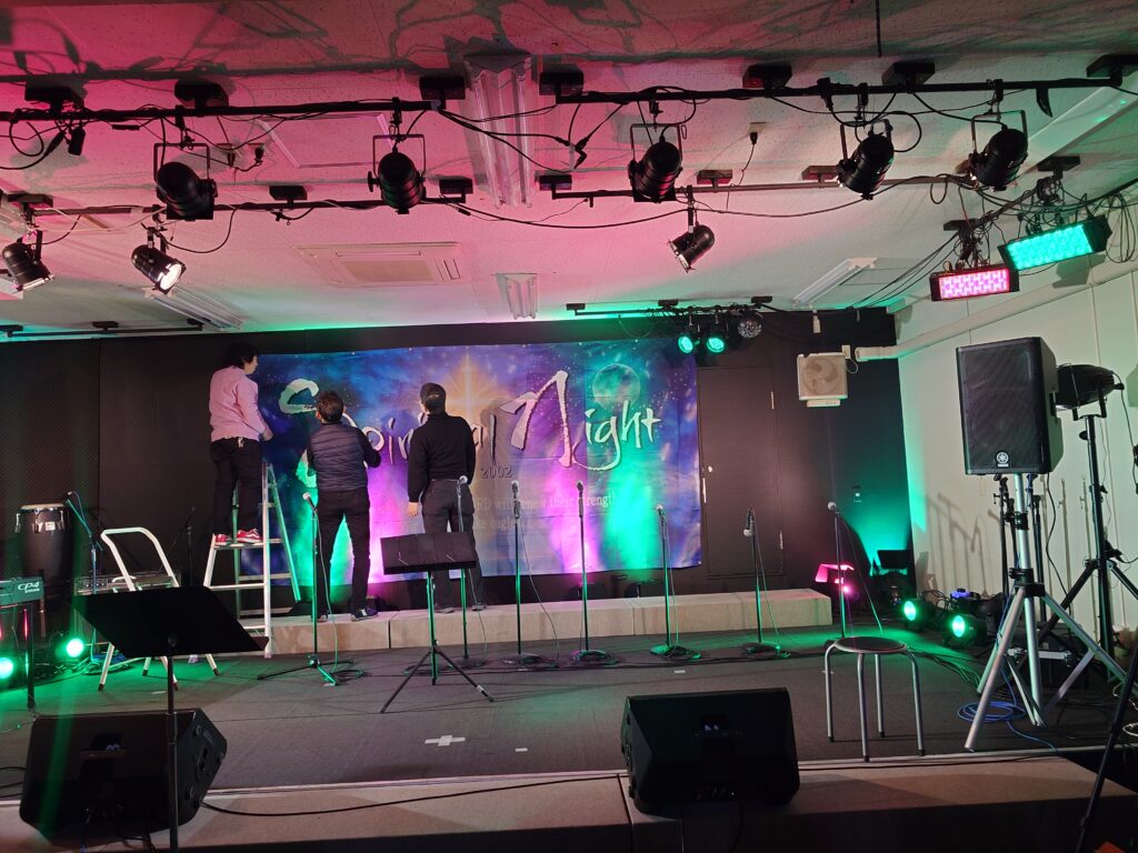 小さめの幕は集合写真や出張公演に